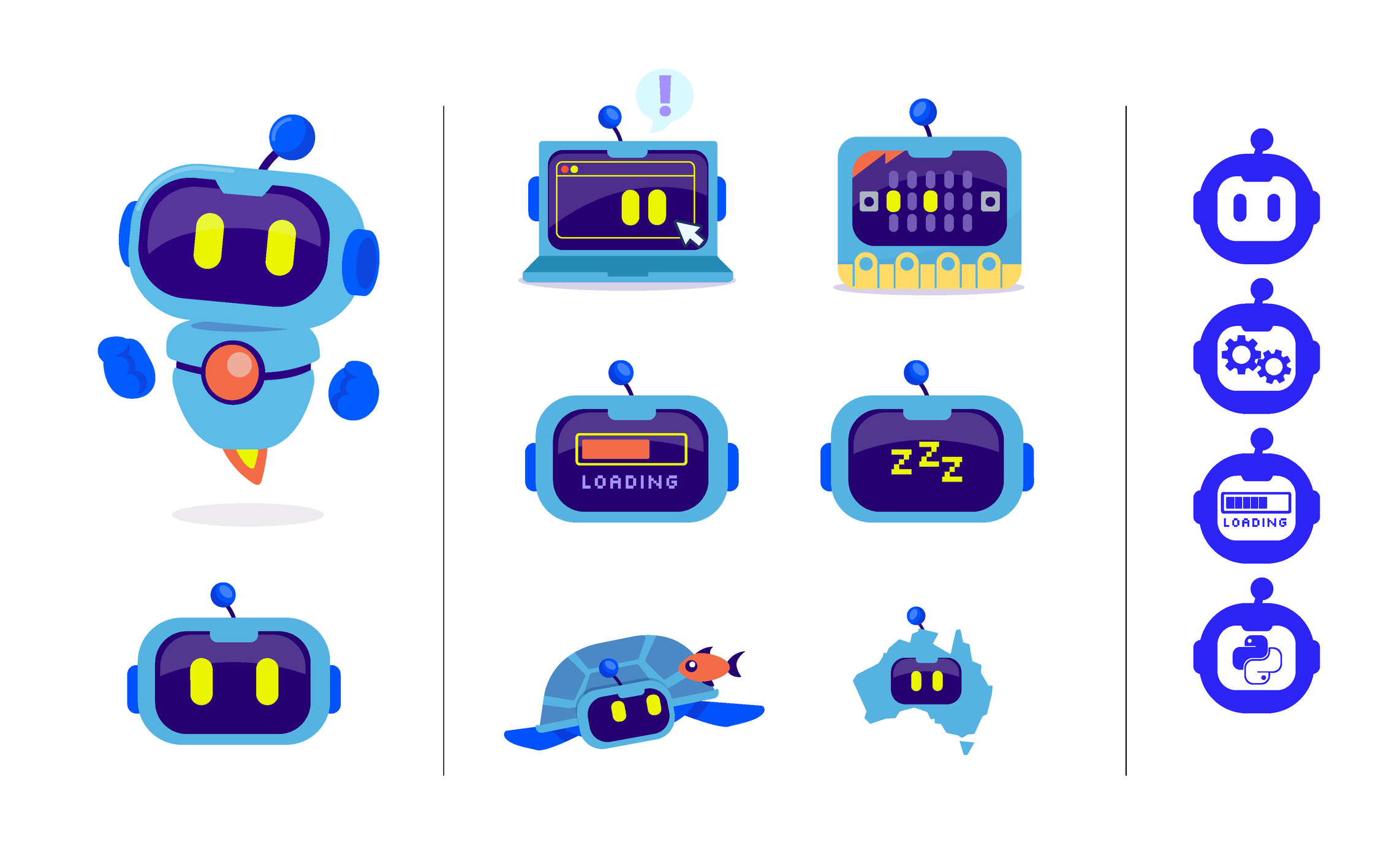 GrokBot Mascot Design • Developed as part of the brand refresh (at the request of the CEO no less), GrokBot was conceptualised to help communicate product features as well as points of difference. A core concept is GrokBot’s ability to ‘transform’ into things like micro computers and... reptiles. One colour exceptions are shown on the right.